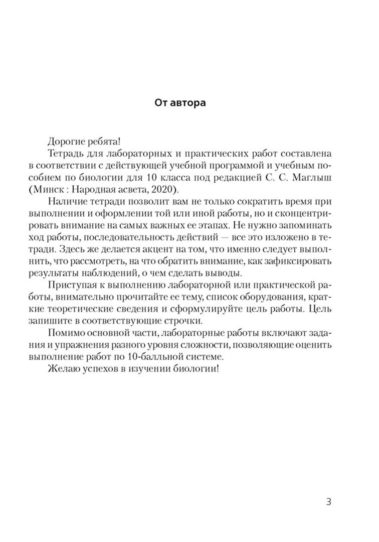 Тетрадь подготовлена в соответствии с учебной программой по биологии для 10 класса учреждений общего среднего образования (базовый уровень).