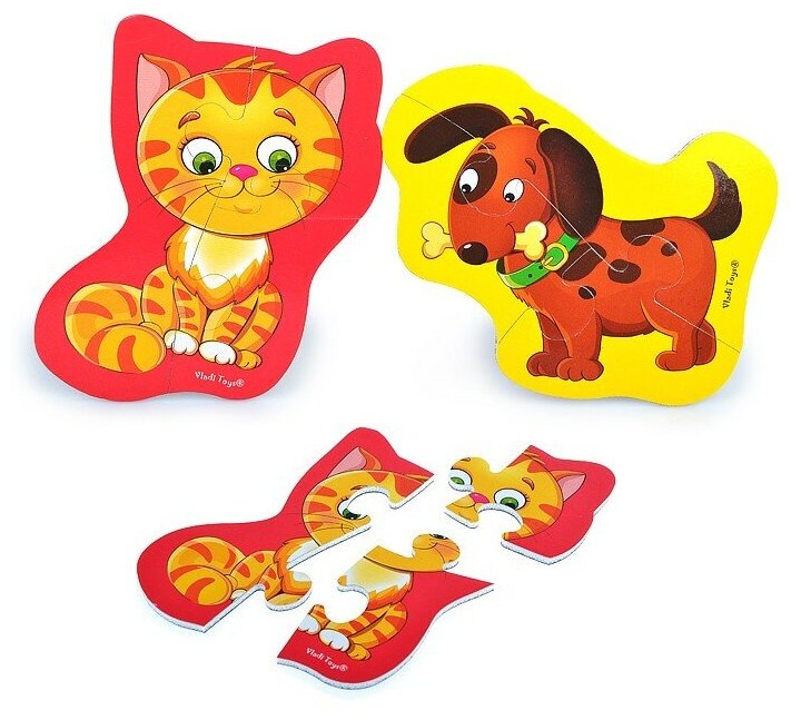 Пазлы магнитные мягкие. Котенок и щенок Vladi Toys