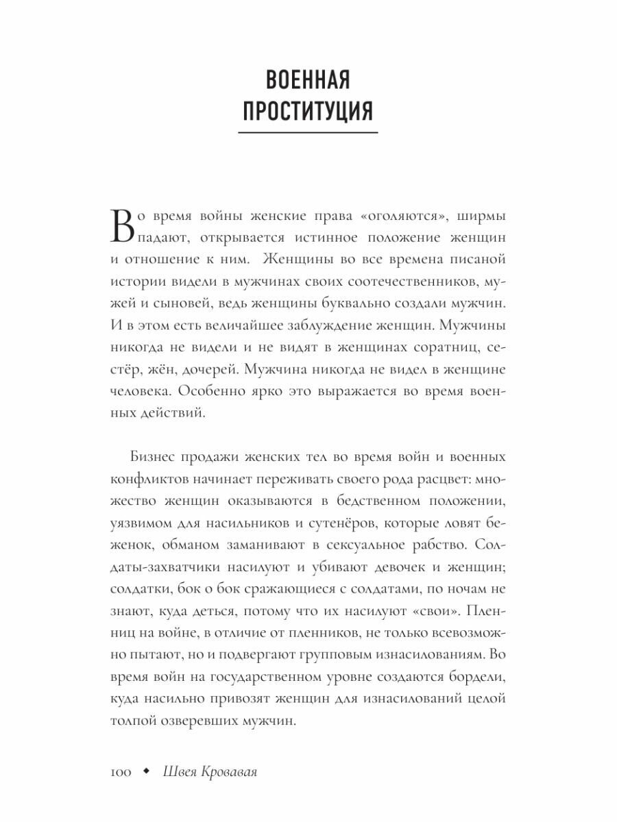 Швея Кровавая - творческий псевдоним авторки и феминистки. Первая книга "Феминизм: наглядно. Большая книга о женской революции" была написана от проекта "Феминизм: наглядно" в соавторстве с Анной Ивановой и тепло принята читательницами. Хлесткий и одновременно отрезвляющий взгляд авторки на феминизм многим помог "снять розовые очки" и увидеть реальность такой, какая она есть.