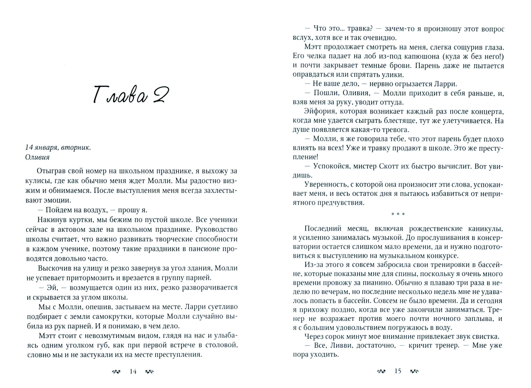 Музыка в голове, бабочки в животе, правильность в мыслях - это Оливия Торн. Идеальная, добрая, правильная, светлая. Она потеряла семью в страшной аварии, заботится о бабуле, которая ее даже не помнит, живет в элитной школе, готовится поступать в колледж и великолепно играет на пианино. Ее будущее безоблачно и расписано на годы вперёд. Но тут приходит он... Мэтт Блейк- это его 3 школа, последний шанс на получение диплома. У парня проблемы в семье, а его поведение - это лишь попытки обратить на себя внимание родителей.