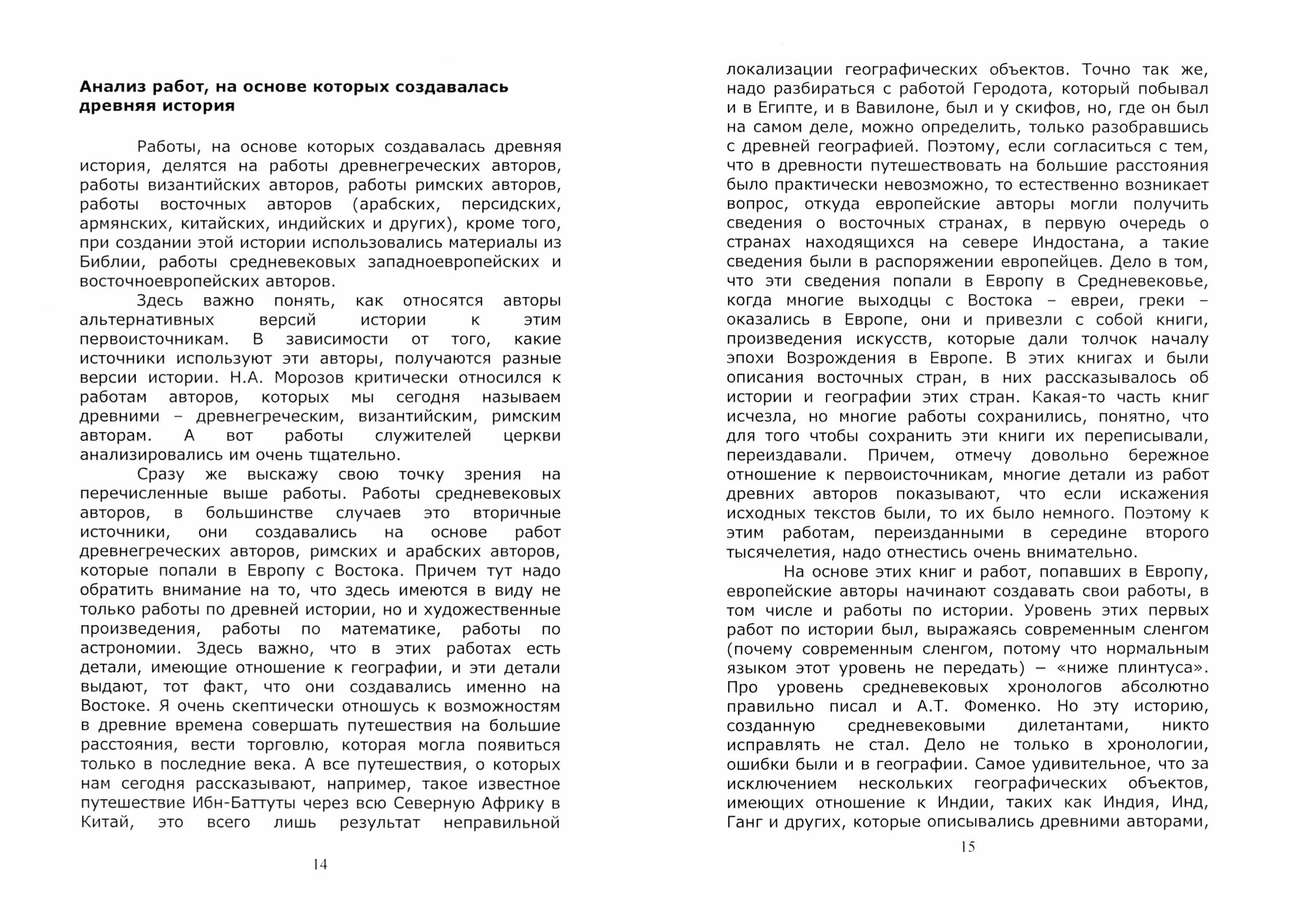 Практически все авторы альтернативных версий истории, идя путем Фоменко, считают своим долгом, определить, когда происходили те или иные события истории. Но этот путь тупиковый, в дальнейшем я объясню свою точку зрения, здесь же отмечу работы В.В. Макаренко, который не стал разбираться с хронологией, а попытался ответить на вопрос, где происходили те или иные события древней истории.