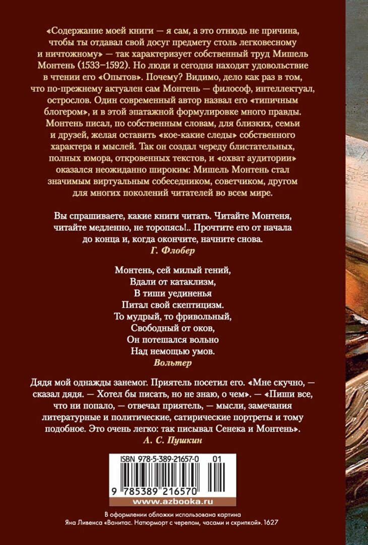 Сервис сравнения цен СкидкаГИД предлагает сравнить цены на товар «Книга: Опыты (де Монтень Мишель Эйкем); Азбука, 2022»