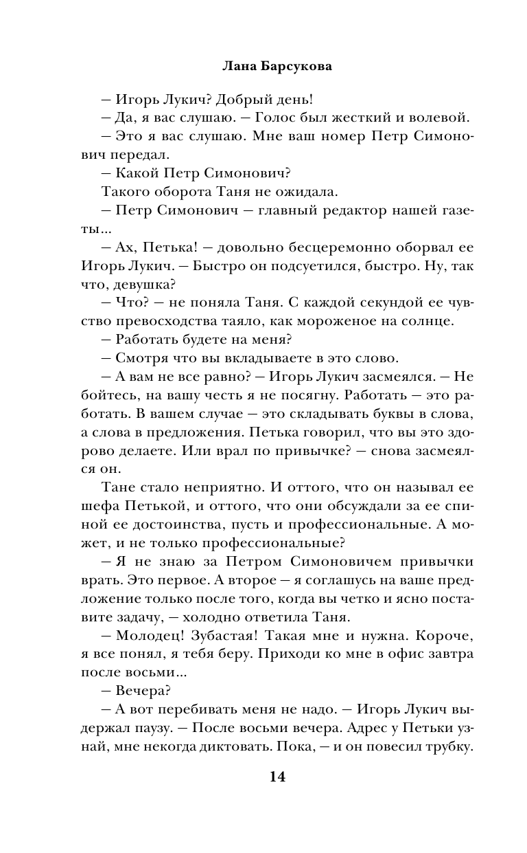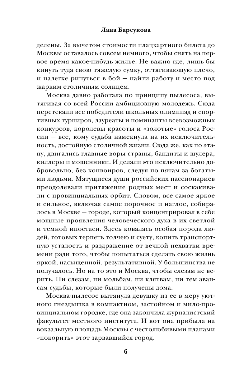 Книга про молодую журналистку и немолодого бизнесмена. Казалось бы, очередная сказка про Золушку. Но как это написано! Я вообще не припомню российских книг, где бы предприниматель был правдоподобный, живой человек, который сполна заплатил на свое богатство. Заплатил одиночеством. О развитии рынка в России из этой книги можно узнать на порядок больше, чем из университетского курса по экономике. Только один вопрос: откуда Лана Барсукова это все знает? Потрясающий автор и очень достойная книга!