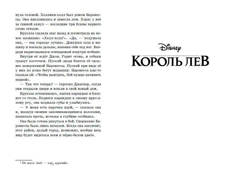 В одной книге собраны сюжеты классных мультфильмов и одного фильма. Круэлла - не совсем детская история, но описана забавно, о мечте, о таланте, о месте. Я краснею - новый смешной мульт, напоминает какие -то японские мотивы, а сама история про переходных возраст во всех смыслах. Король Лев - это бессмертная классика, мультфильм на все времена, мне кажется, я знаю его наизусть. Хорошая подборка в одной книге. Твёрдая глянцевая обложка, хорошая бумага, картинки.