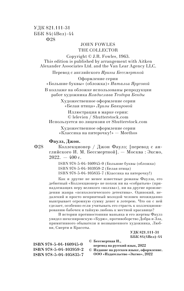 Книга: Коллекционер (Джон Роберт Фаулз); Эксмо, Редакция 1, 2022