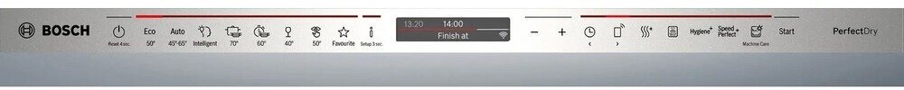 Встраиваемая посудомоечная машина Bosch — премиальная модель шириной 59.8 см. Функция Home Connect позволяет удаленно управлять, диагностировать прибор и обновлять программное обеспечение. TimeLight проецирует на пол текущий этап программы, общую статусную строку и время до окончания программы. А также заменяет, скрытый на время работы, дисплей прибора. Фоновой подсветкой Emotion Light Pro можно управлять через приложение Home Connect, выбирая необходимый цвет.