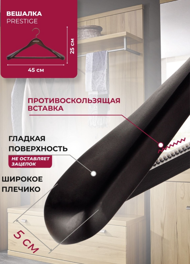 Удобная вешалка поможет организовать пространство в шкафу и гардеробной. Аккуратно развешанные вещи в шкафу не помнутся и надолго сохранят вид только что выглаженных вещей. Вешалка изготовлена из натурального дерева - изделие долго прослужит для вашего удобства. Эргономичная форма плечиков и усиленный крючок надежно удерживают как повседневную, так и верхнюю одежду. Используйте изделие для хранения блузок, рубашек, платьев, пиджаков, курток, пальто и других предметов гардероба. Гладкая поверхность гардеробных вешалок не оставляет зацепок на ткани и не портит вещи.