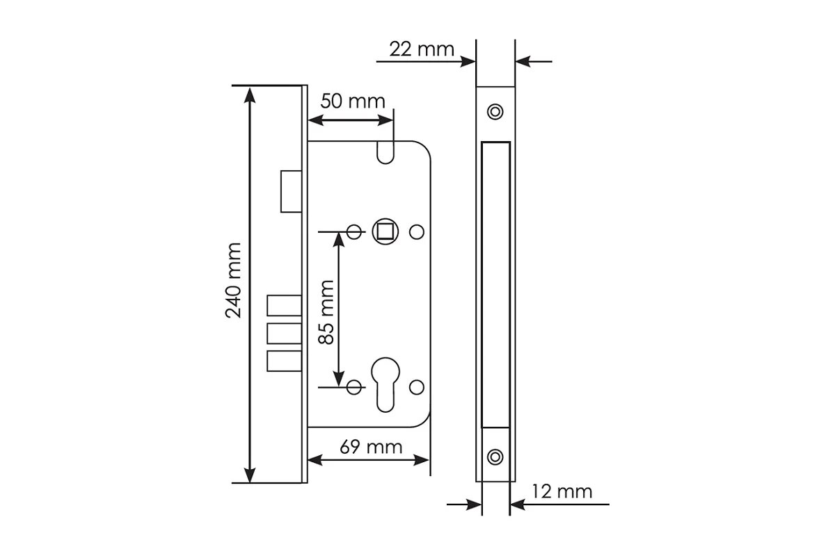 | Толщина корпуса замка | 22 |