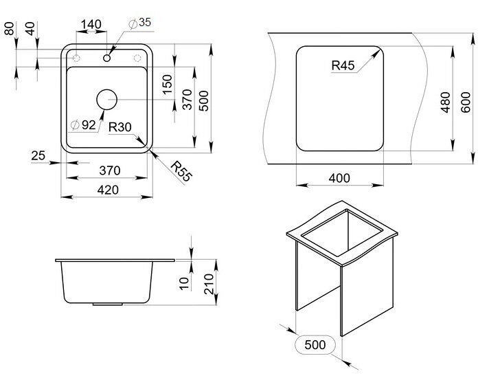 Эта односекционная мойка имеет классическую квадратную форму. Несмотря на достаточно компактные габариты, она имеет вместительную чашу. Производитель предусмотрел наличие готового отверстия под смеситель, что ускоряет и упрощает установку. Ещё один плюс кухонной мойки ''Granula 4202'' - оригинальный фирменный дизайн.