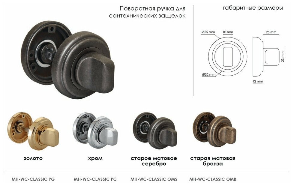 Сантехническая завертка ''Morelli'' серии ''Classic''. Предназначена для запирания двери изнутри как в сантехнических помещениях, так и в жилых помещениях. Используются в комплекте с ручками ''Morelli'' серии ''Classic'''. Цвет: полированный хром.