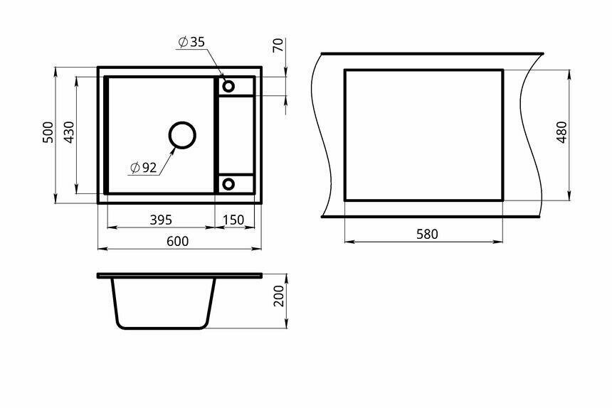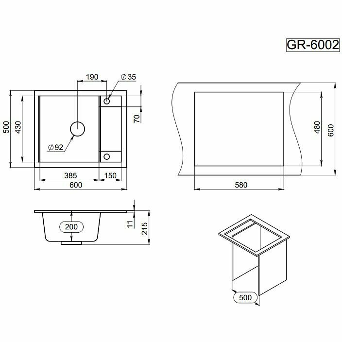 мойка GRANULA 600х500х20мм алюминиум кварц (6002 алюминиум)