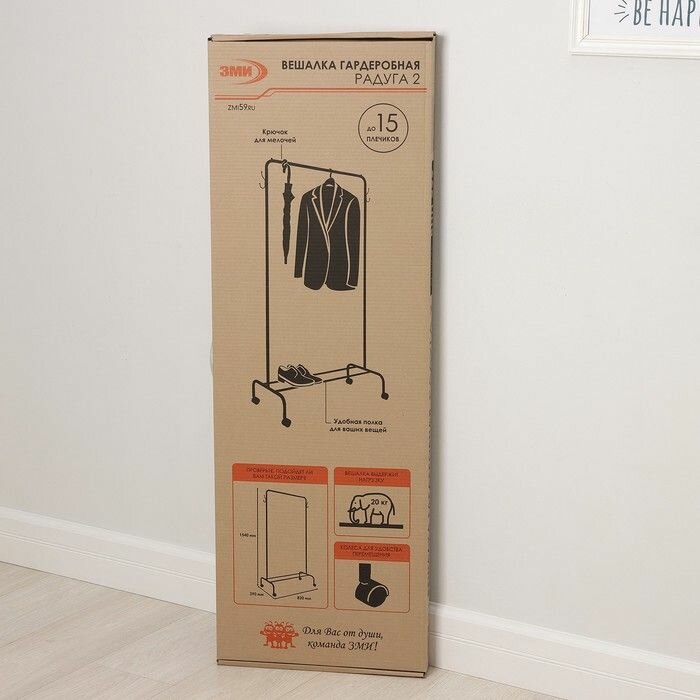 Гардеробная напольная вешалка "Радуга 2" от российского производителя "ЗМИ" создана для хранения одежды и обуви. Благодаря своему дизайну, многофункциональности и многообразию цветов она отлично впишется в любой интерьер. Её можно использовать в гардеробе, спальне или прихожей. Долговечная, благодаря корпусу из стали, покрытому полимерно-порошковым покрытием. Вмещает порядка 15 плечиков, а ограничители не дадут им соскользнуть на пол. Перекладина выдерживает нагрузку до 20 кг. Полка снизу позволяет разместить обувь или коробки. С помощью колёсиков вешалку удобно перемещать по комнате. На стойках расположены металлические крючки для различных аксессуаров - сумочек, зонтов, шляп и т.д. Максимально простая сборка, инструменты в комплекте, соберут даже дети. Изделие в картонной упаковке с удобной ручкой - легко донести от пункта выдачи до дома и вручить в качестве подарка. Товар продаётся напрямую от производителя, что гарантирует качество и выгодную цену.