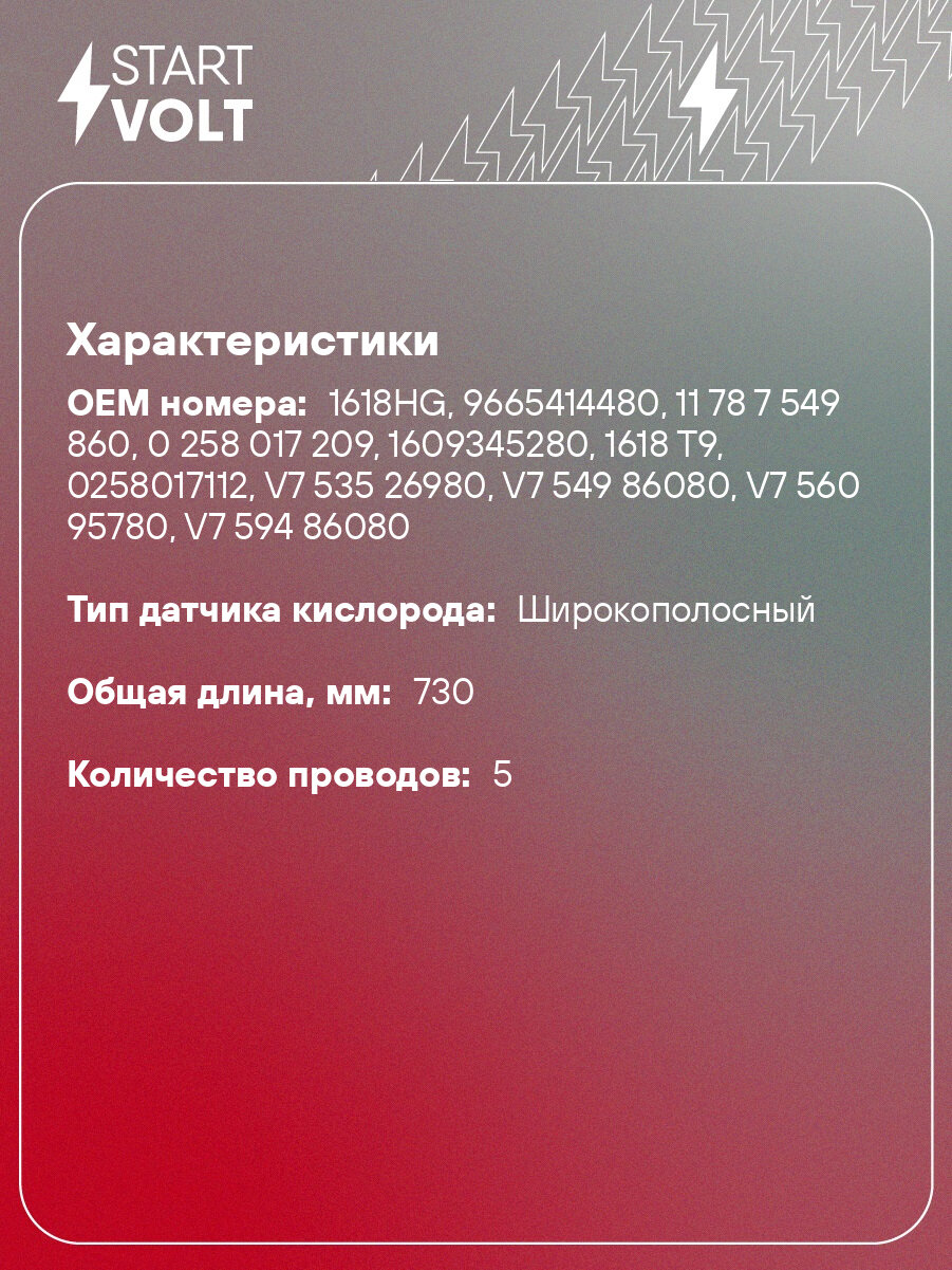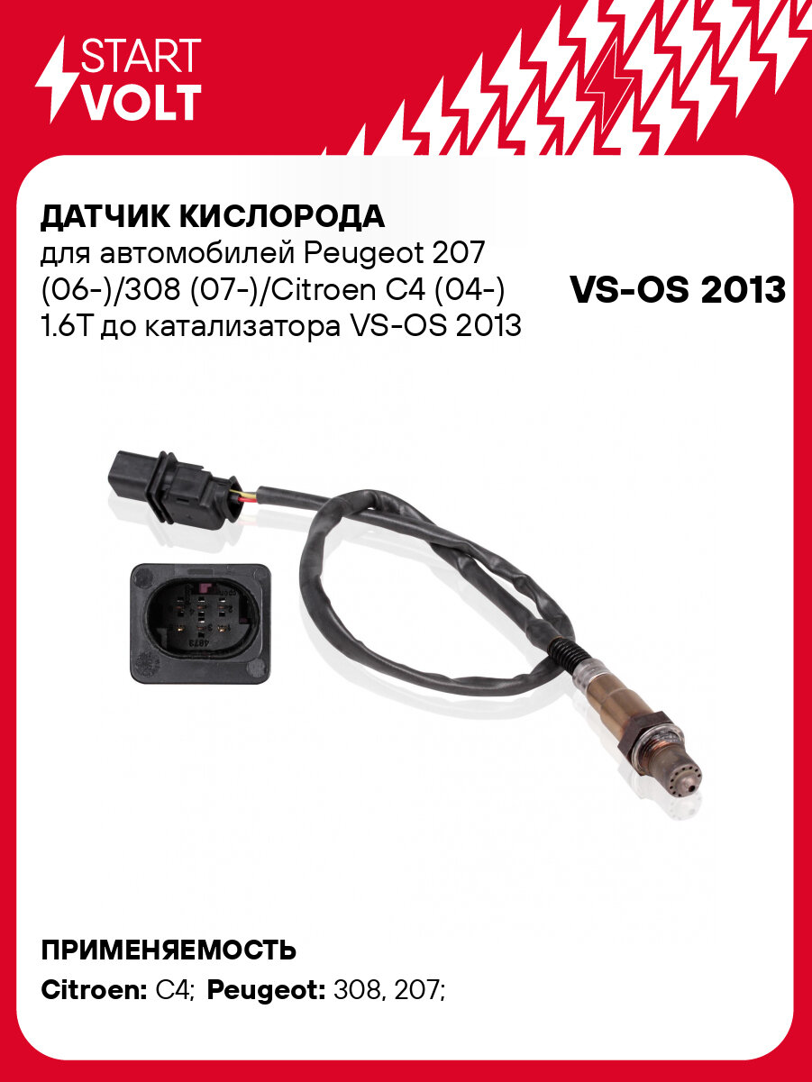 Датчик кислорода для автомобилей Peugeot/Citroen 207 (06-)/308 (07-)/C4 (04-) 1.6T до катализатора StartVolt (VS-OS 2013)