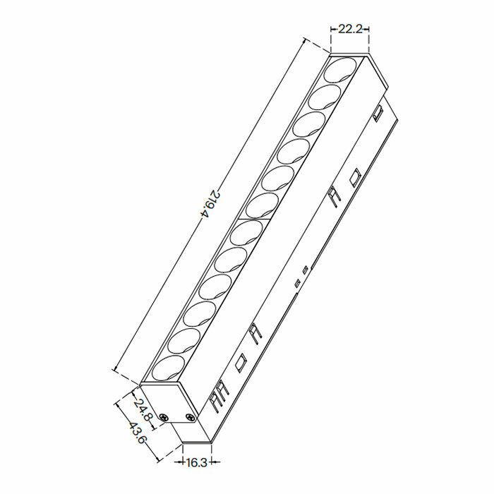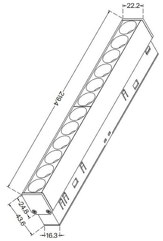 - Размер плафона (ШxВxД): 219,4x24,8x22,2 мм.