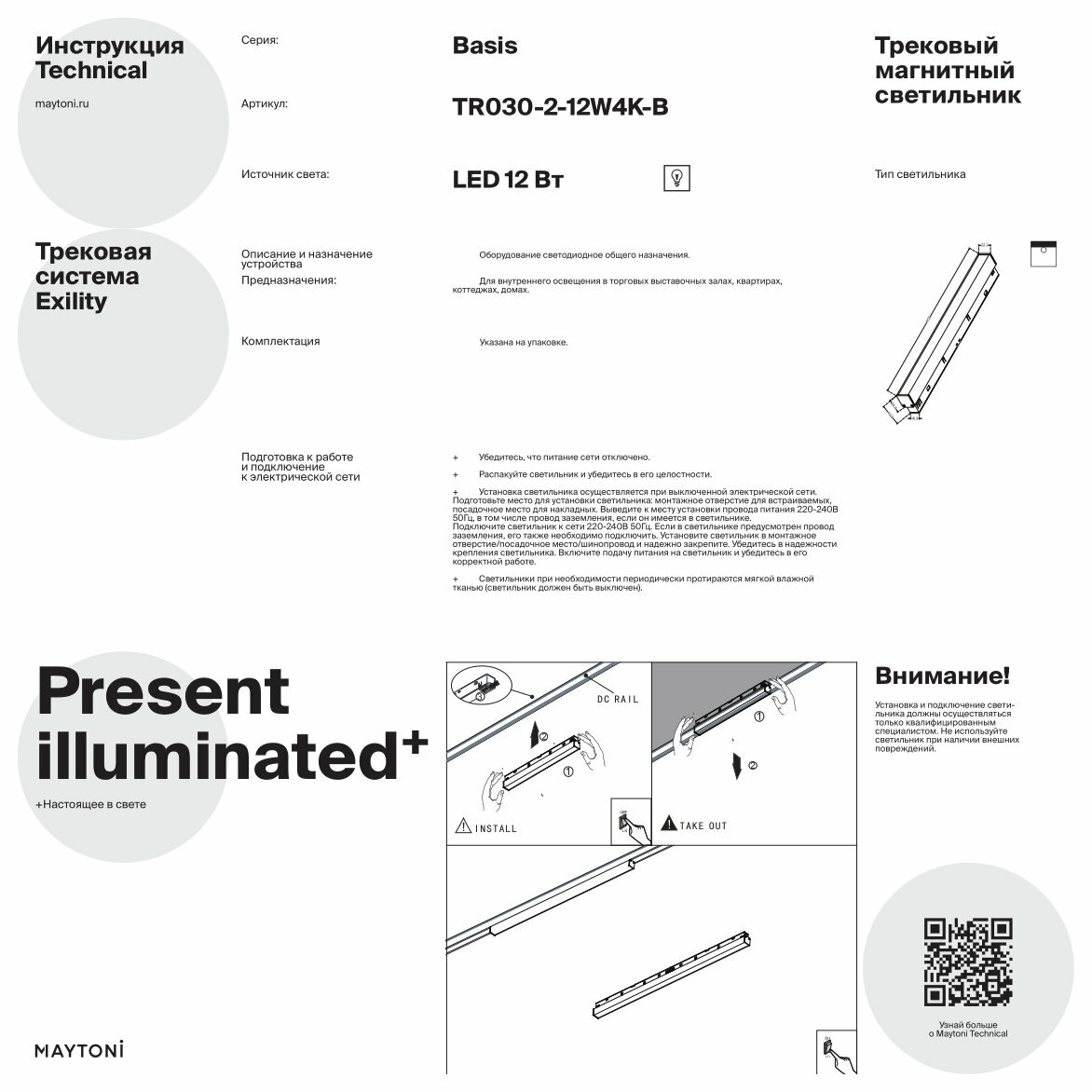 Трековый светильник магнитный 48V 12W Basis TR030-2-12W4K-B - продукт известной компании Maytoni (Германия). Имеет максимальную мощность 12 Вт. Отлично подойдет для таких мест, как гостиная, кафе, кабинет, кухня, офис, магазин. Впишется в интерьеры следующих стилей: техно.