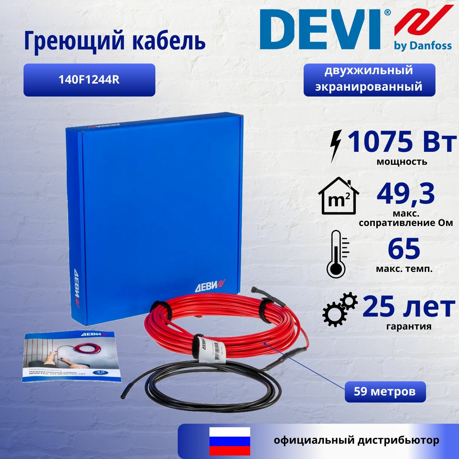 Нагревательный кабель ДЕВИ Flex-18T 1075 Вт 230 В 59 м (140F1244R)