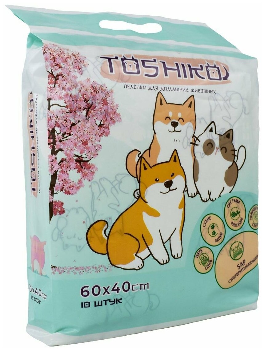 Пеленки Toshiko впитывающие одноразовые с ароматом сакуры 10 шт 60х40 см