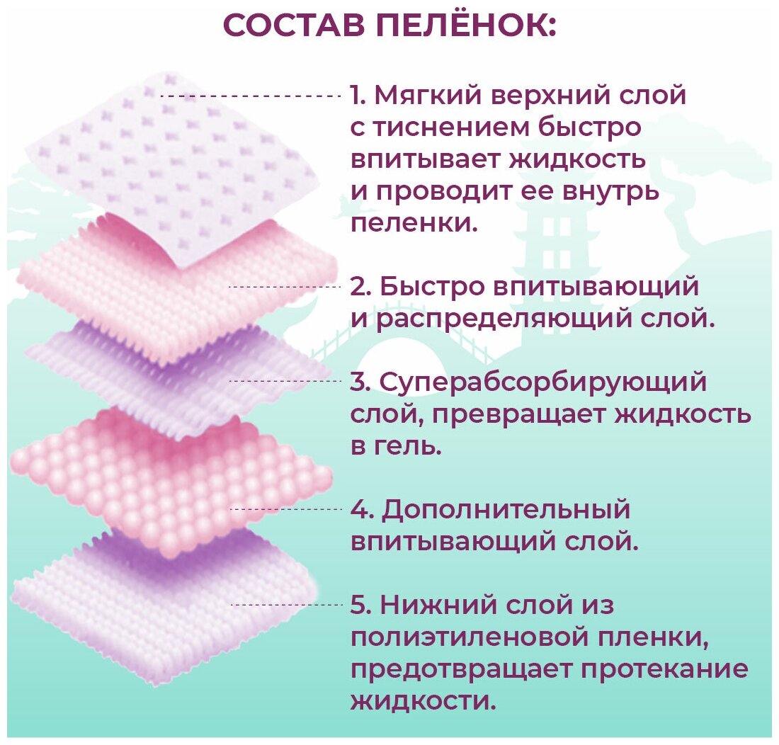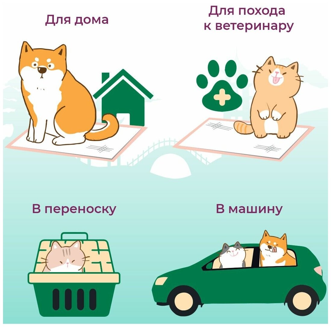 Одноразовые пелёнки с лёгким ароматом сакуры . Входящий в состав суперабсорбент превращаетжидкость в гель и нейтрализует неприятный запах. Расположенные покраям липкие фиксаторы помогают надёжно закрепить пелёнку. Рекомендуются для мелких пород собак и кошек.