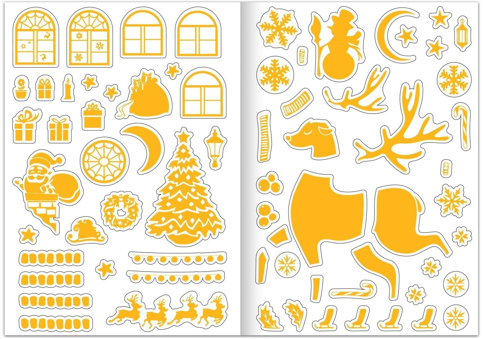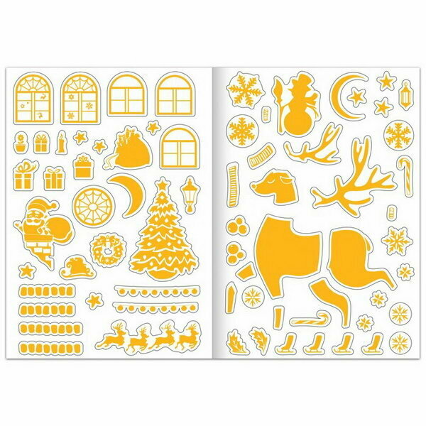 - Внутри ребёнок найдёт 4 заготовки для аппликаций, 4 странички со светящимися наклейками и примеры, что должно получиться в итоге.