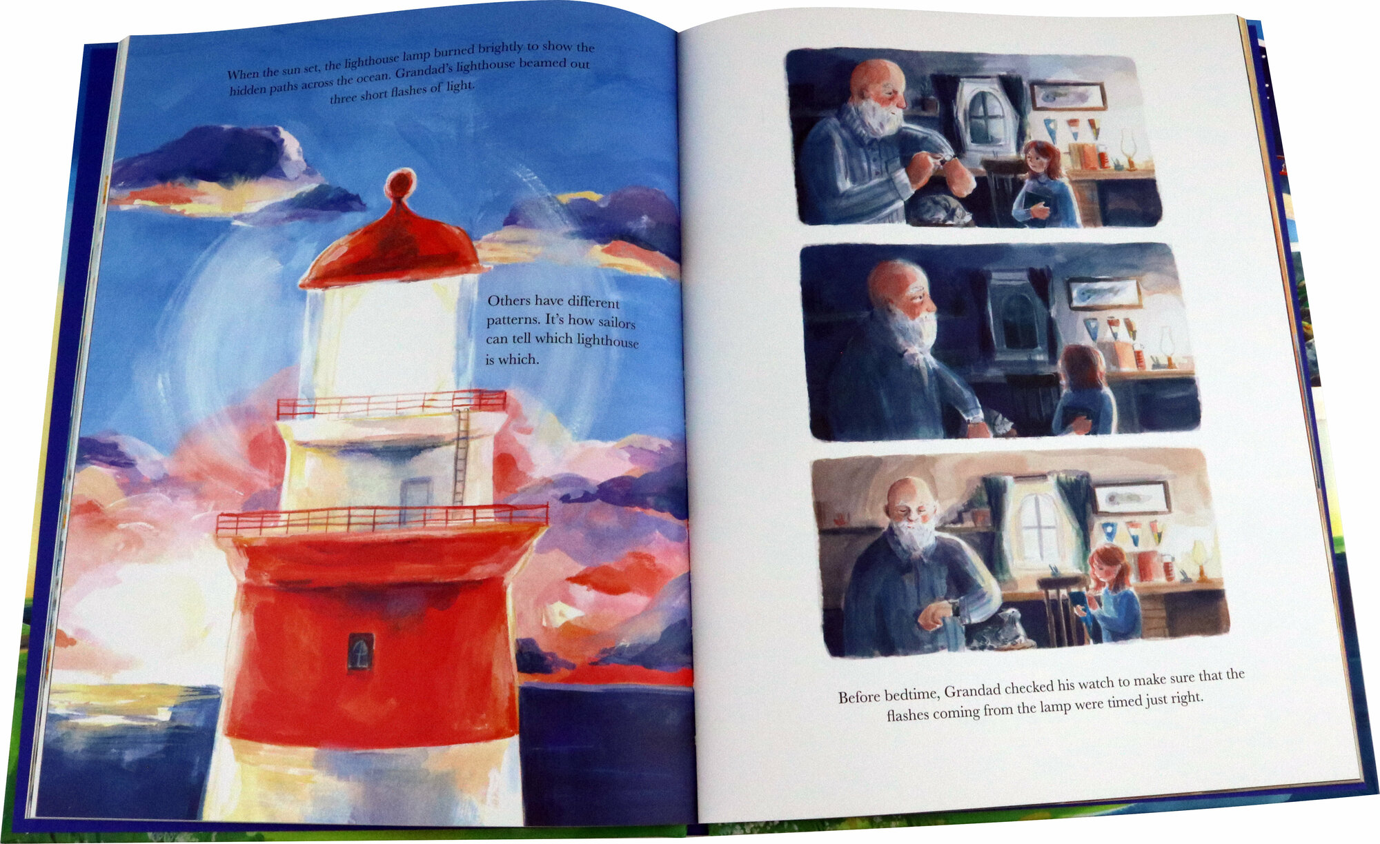 On a rocky island in the middle of the sea, Eva's Grandad is the keeper of the lighthouse. When storms brew and the mist descends, the lighthouse offers a beacon of hope to sailors trying to find their way home.