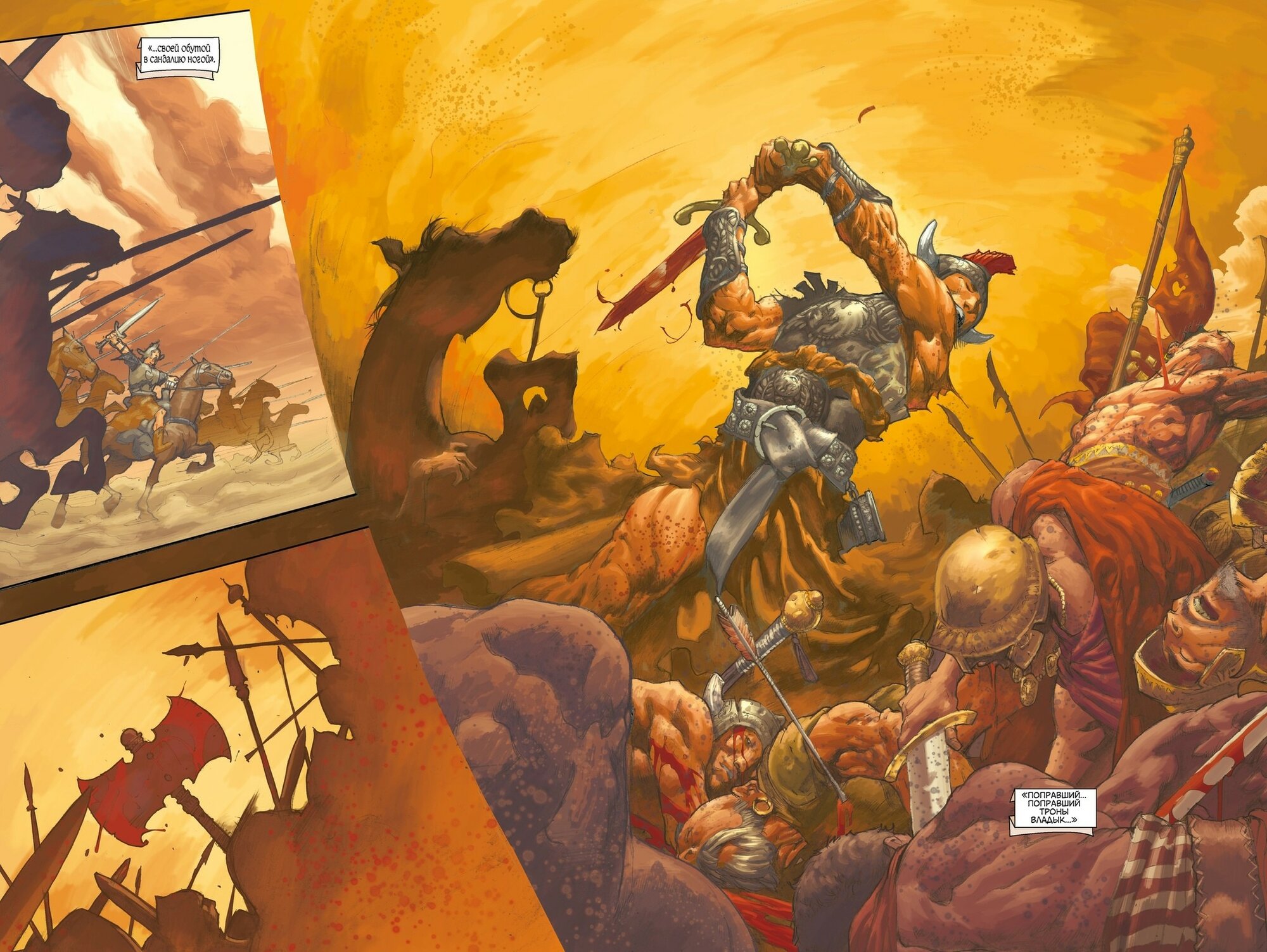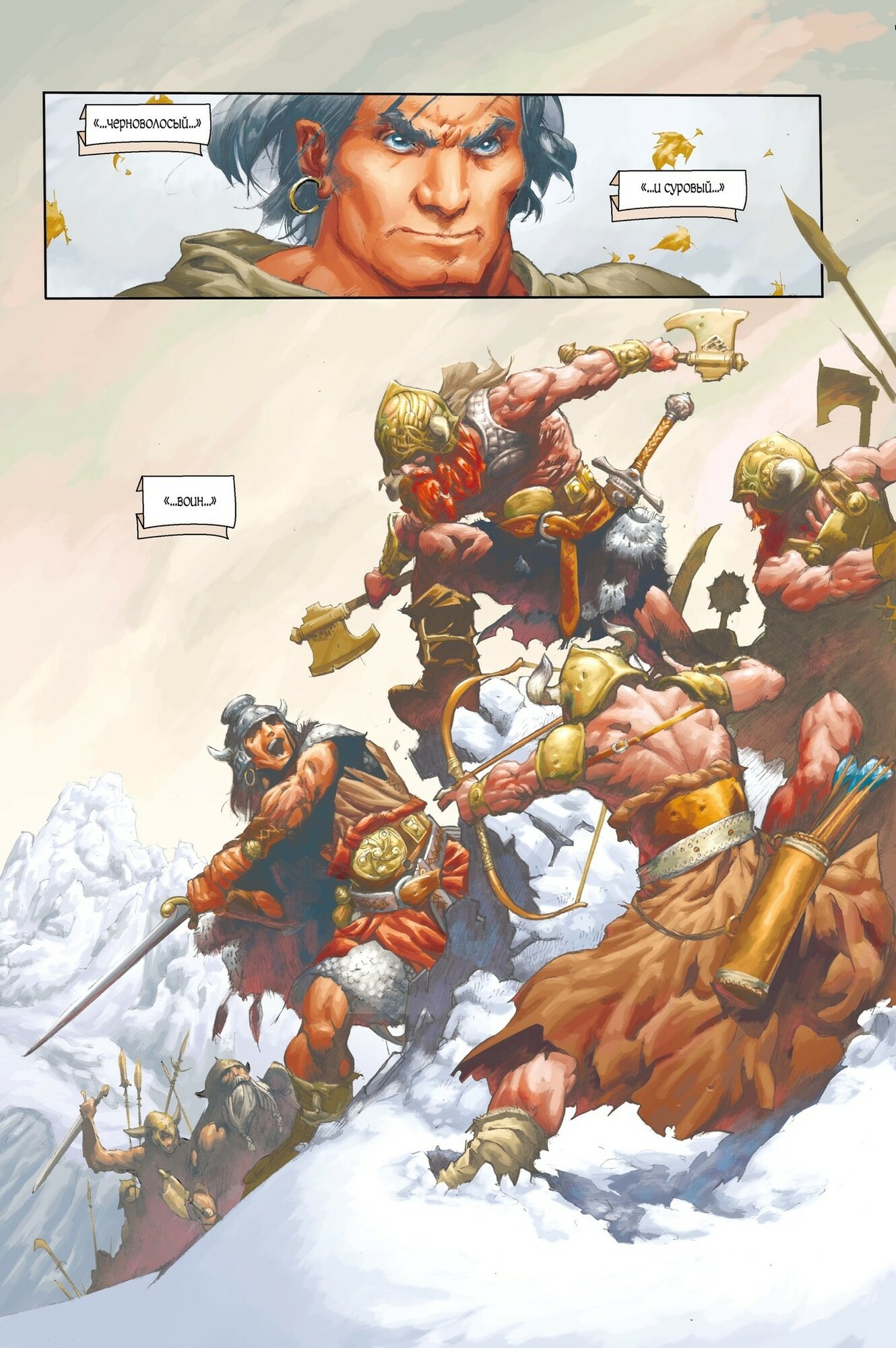 Конан возвращается! Встречайте: культовая комикс-сага о варваре-киммерийце от сценариста Курта Бьюсика и художника Кэри Норда, вобравшая лучшие черты чеканной прозы Роберта И. Говарда!