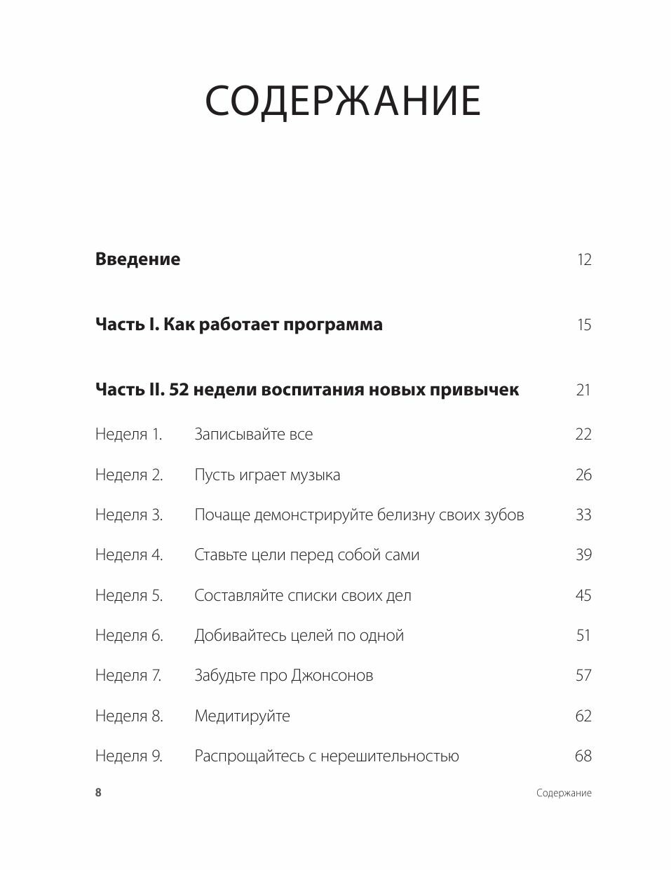 Несмотря на мои попытки следовать логике книги - привычки расписаны по неделям - уже на второй неделе возник резонный вопрос \"а как же составлялся порядок этих привычек и есть ли какая-то логика?\" Или все таки был просто список привычек и условный редактор просто составлял из них порядок, причем рандомно. Присутствие в списке некоторых привычек так же вызывает сомнение.