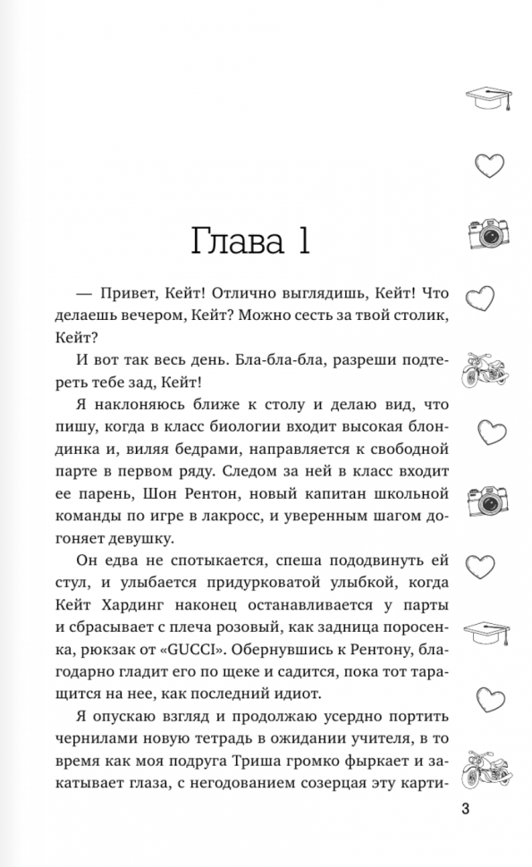 Несмотря на то, что здесь явное клише \"плохой парень и хорошая девушка, которым нельзя быть вместе\", книга мне понавилась. Слог автора легкий, текст без опечаток и ошибок, читается быстро. Сюжет интересный и чем-то напоминает мне романтические американские сериалы для подростков. Любовная линия хорошо прописана, в ней видно химию, чувства, эмоции. Все хорошо, но чего-то не хватило. В общем мне понравилось