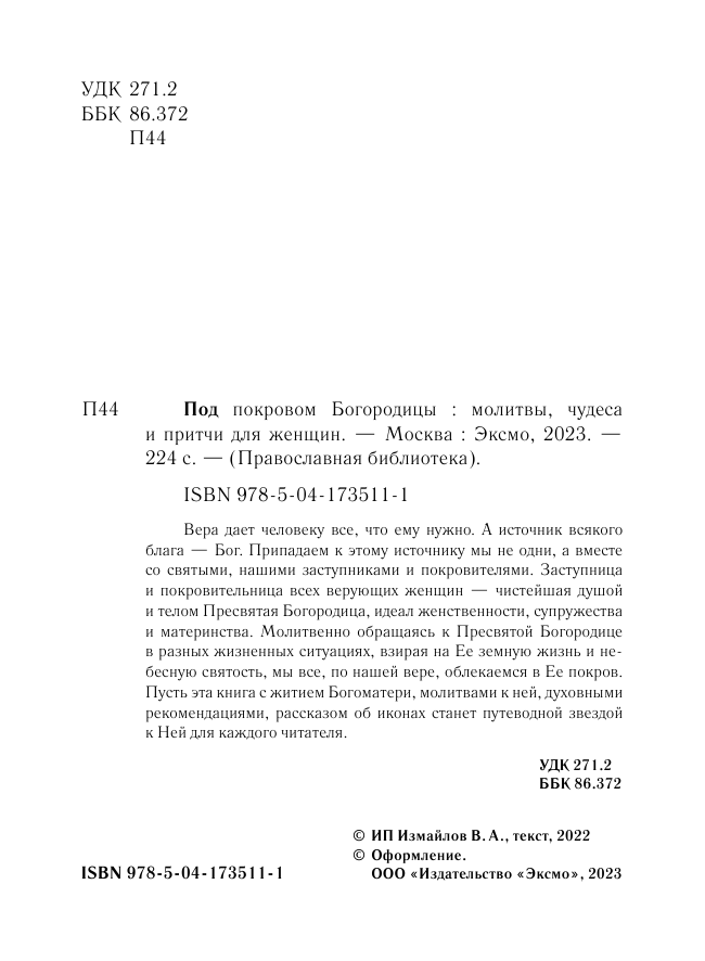 На сегодняшний день товар «Книга: Под покровом Богородицы. Молитвы чудеса и притчи для женщин. Второе издание (Богословский А.А.); ООО "Издательство "Эксмо", 2023» можно купить с кешбеком в 4 магазинах: book24, Буквоед, Читай-город, Яндекс.Маркет