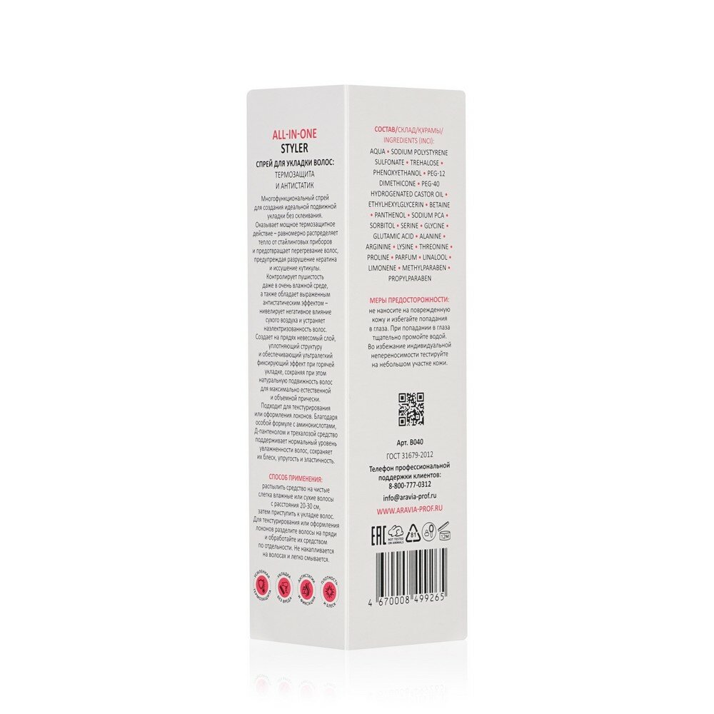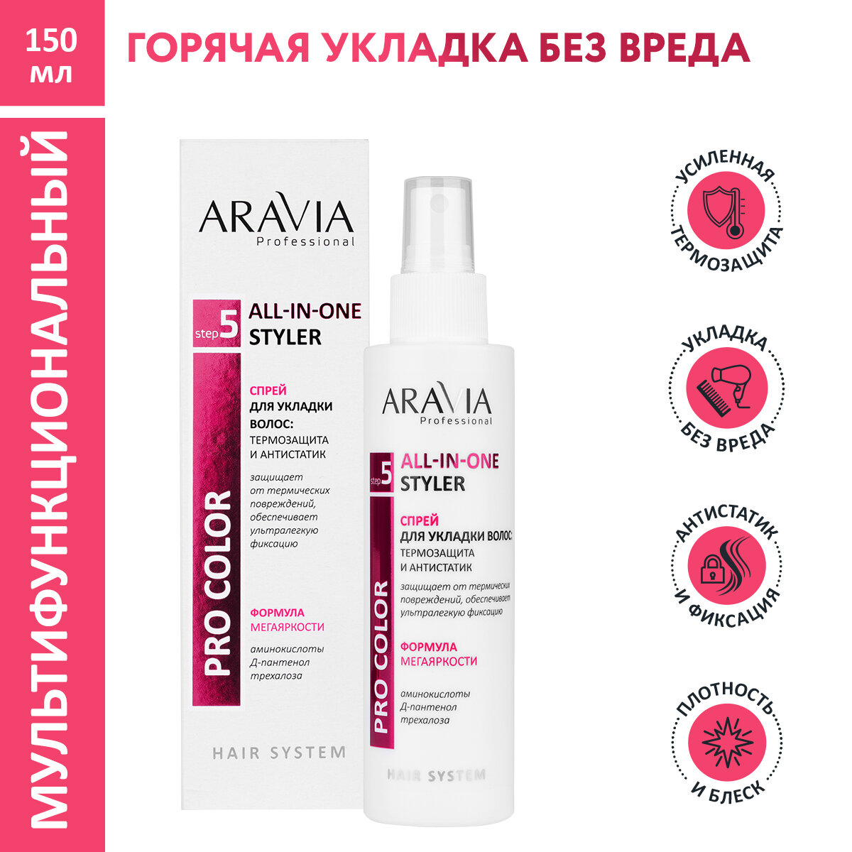 Aravia Professional Спрей для укладки волос: термозащита и антистатик All-In-One Styler 150 мл (Aravia Professional ) (ЭХ99989433469)
