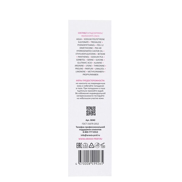 | Состав | aqua, sodium polystyrene sulfonate, trehalose, phenoxyethanol, peg-12 dimethicone, peg-40 hydrogenated castor oil, ethylhexylglycerin, betaine, panthenol, sodium pca, sorbitol, serine, glycine, glutamic acid, alanine, arginine, lysine, threonine, proline, parfum, linalool, limonene, methylparaben, propylparaben |