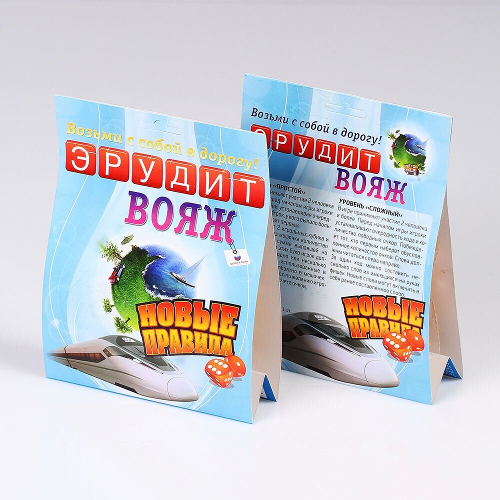 Игра Эрудит Вояж разработана для юных путешественников. Удобная форма и упрощенные правила помогают тренироваться в словотворчестве в любое время и в любом месте. Попробуйте сами! Для 2-4 игроков от 7 лет.