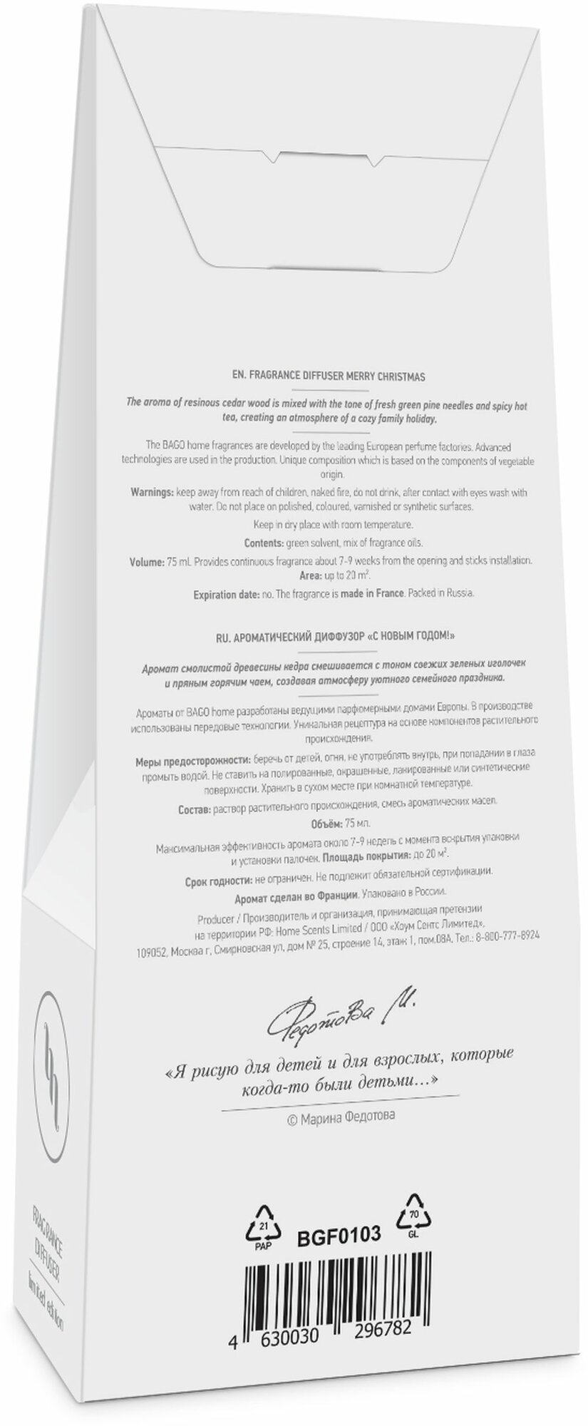 Диффузор ароматический BAGO home Новогодняя коллекция. С новым годом! (BGF0103) (размер: Один размер)