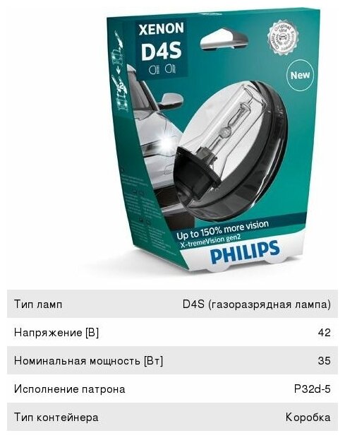 Обзор ксеноновой лампы D4S Philips 42402XV2C1 X-tremeVision gen2 +150%
