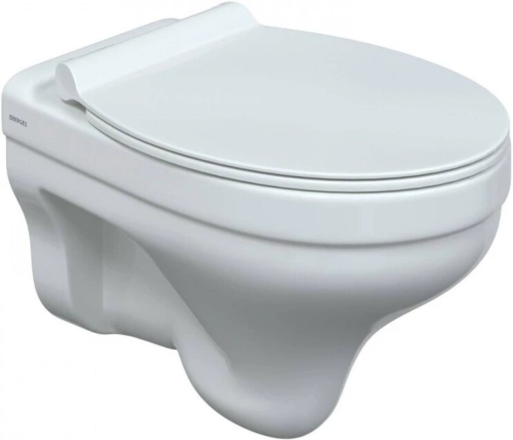 Подвесной унитаз Berges Albit S 082147 белый, 52 см, сиденье Top Slim SO, микролифт, быстросъем. Безободковая система смыва, антибактериальное покрытие, экономия воды, открытое крепление.