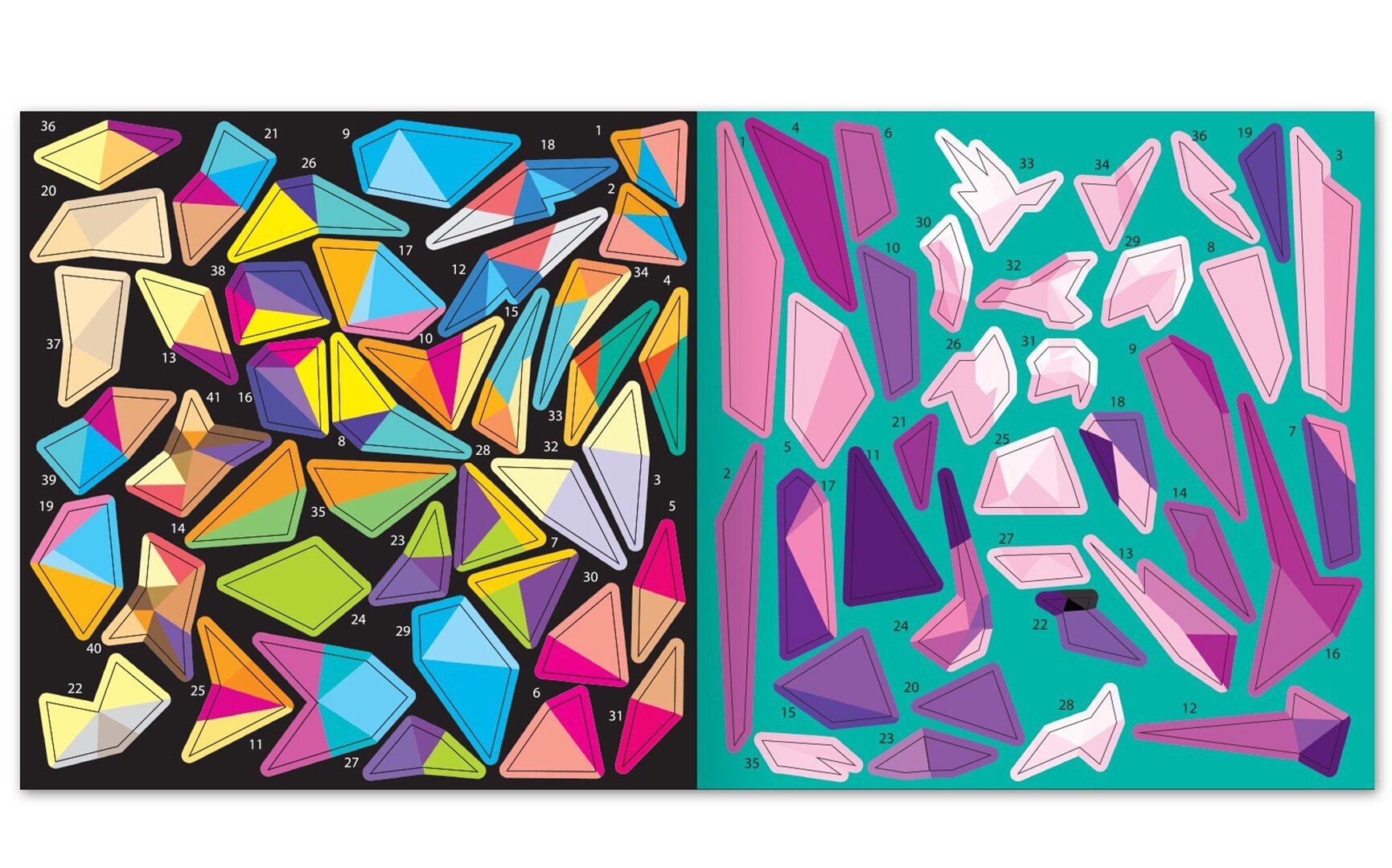 150 наклеек разной геометрической формы и разного цвета. Каждая наклейка пронумерована.