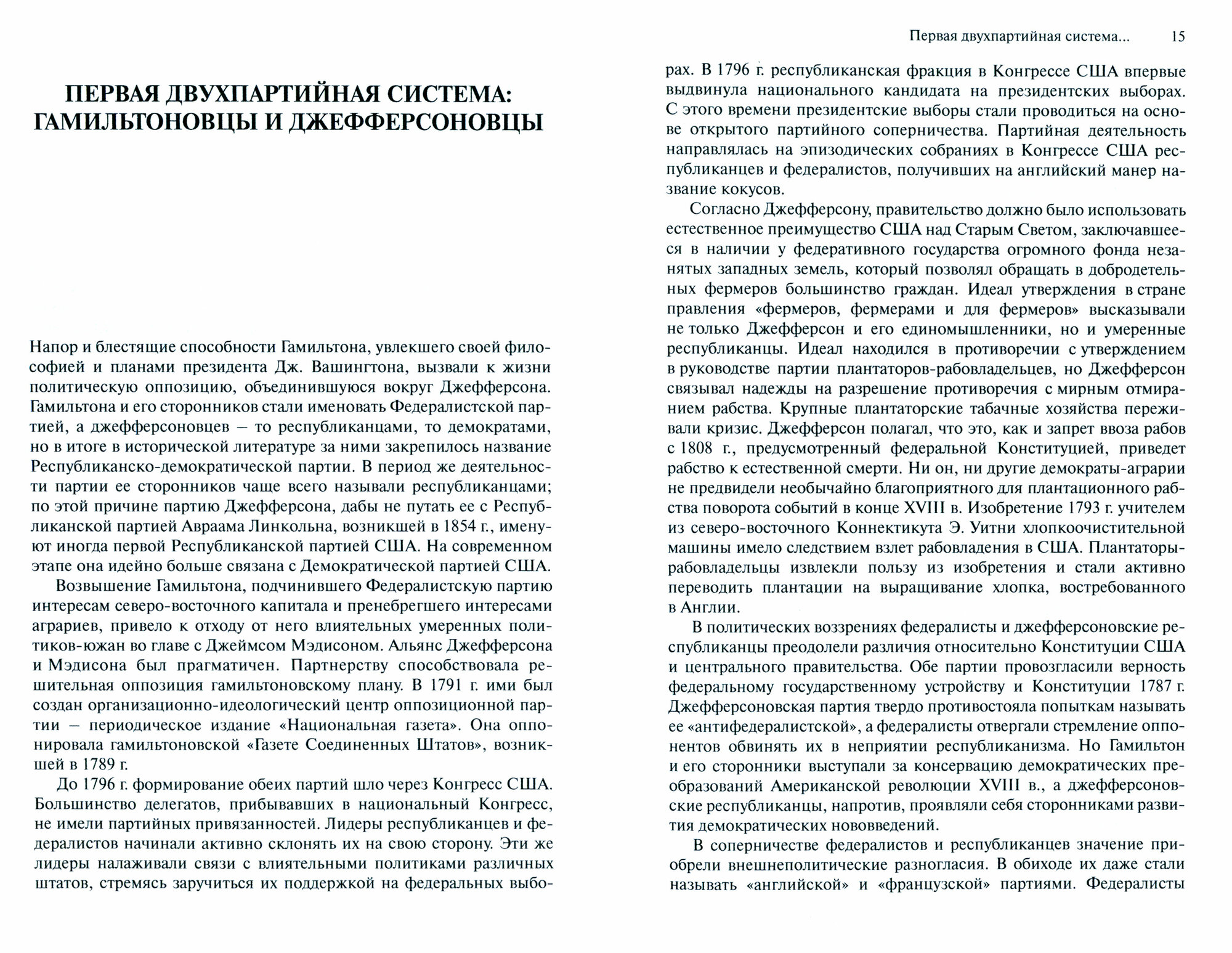 В США существует двухпартийная система, но мало кто знает, что она за двести с лишним лет американской независимости неоднократно обновлялась. Можно назвать три системы с разными названиями главных участников. А Республиканская и Демократическая партии, неизменные участники системы с 1850-х гг., неоднократно меняли свои параметры. Историки США насчитывают пять-шесть, а то и больше национальных партийных систем. Автор следует собственной периодизации и дает оценки, отличные от американских и современных отечественных, преимущественно публицистических, объяснений.