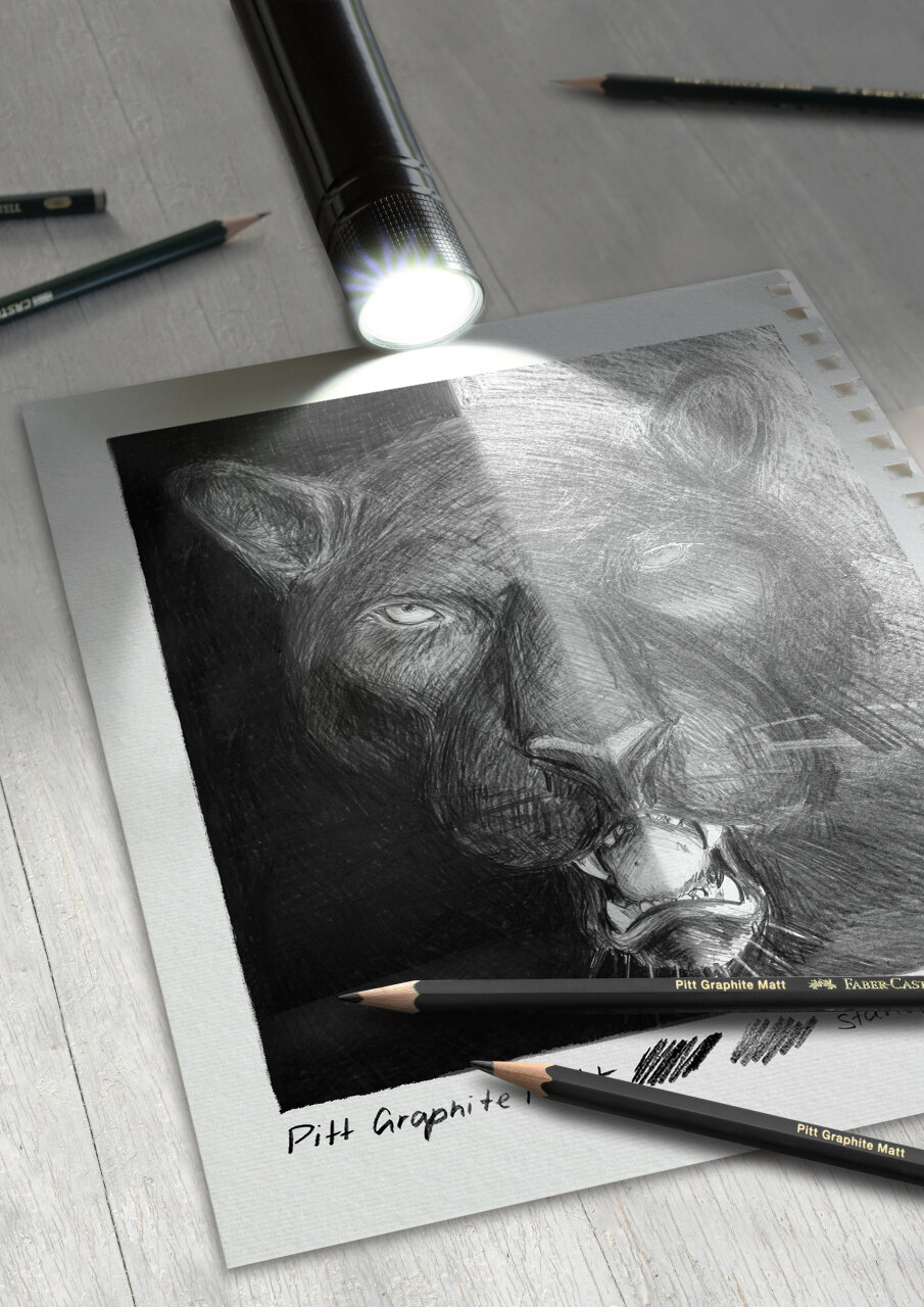 Революция в графитовом рисовании! Графитные карандаши всегда давали мерцающий, блестящий рисунок. В зависимости от предпочтений творческого человека этот эффект либо умело заложен, либо воспринимается как тревожный. Инновационный Pitt Graphite Matt был специально разработан для уменьшения отражения света на бумаге и создания максимального эффекта глубины за счет изменения степени твердости.
