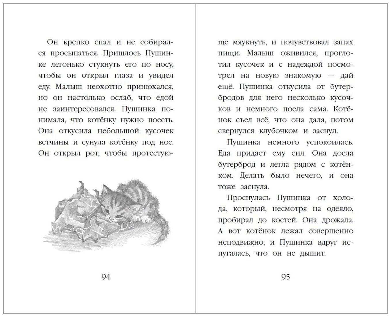 Очень затягивает, читала не отрываясь. Сюжет затягивает, персонажи интересные и живые. Факт того, что мы можем \"слышать\" мыли котёнка добавил, чего-то нового в истории из этой серии, так как прежде такого в них не встречала. Сама история не очень сложна и легко воспринимается, поэтому можно спокойно давай читать детям, (шрифт тоже хороший, крупный. Глаза не разбегаются глядя на страницы, а иллюстрации добавляют атмосферы).