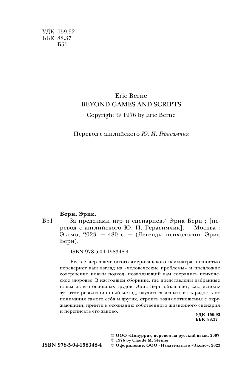 | Серия | Легенды психологии. Эрик Берн. Новое оформление |