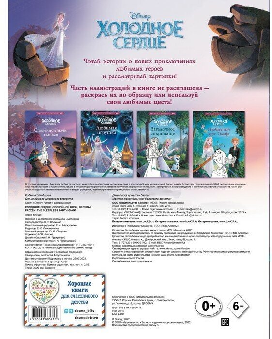 На сегодняшний день товар «Книга: Холодное сердце. Спокойной ночи великан! (Фрэнсис Сьюзан; Эдвардс Джон; Валентина Камби); ООО "Издательство "Эксмо", 2022» можно купить с кешбеком в 4 магазинах: book24, Буквоед, Читай-город, Яндекс.Маркет