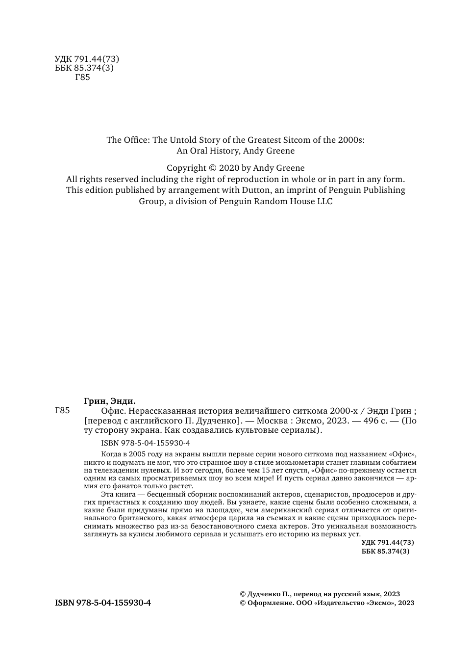 Офис. Нерассказанная история величайшего ситкома 2000-х. (Энди Грин); ООО "Издательство "Эксмо", 2022