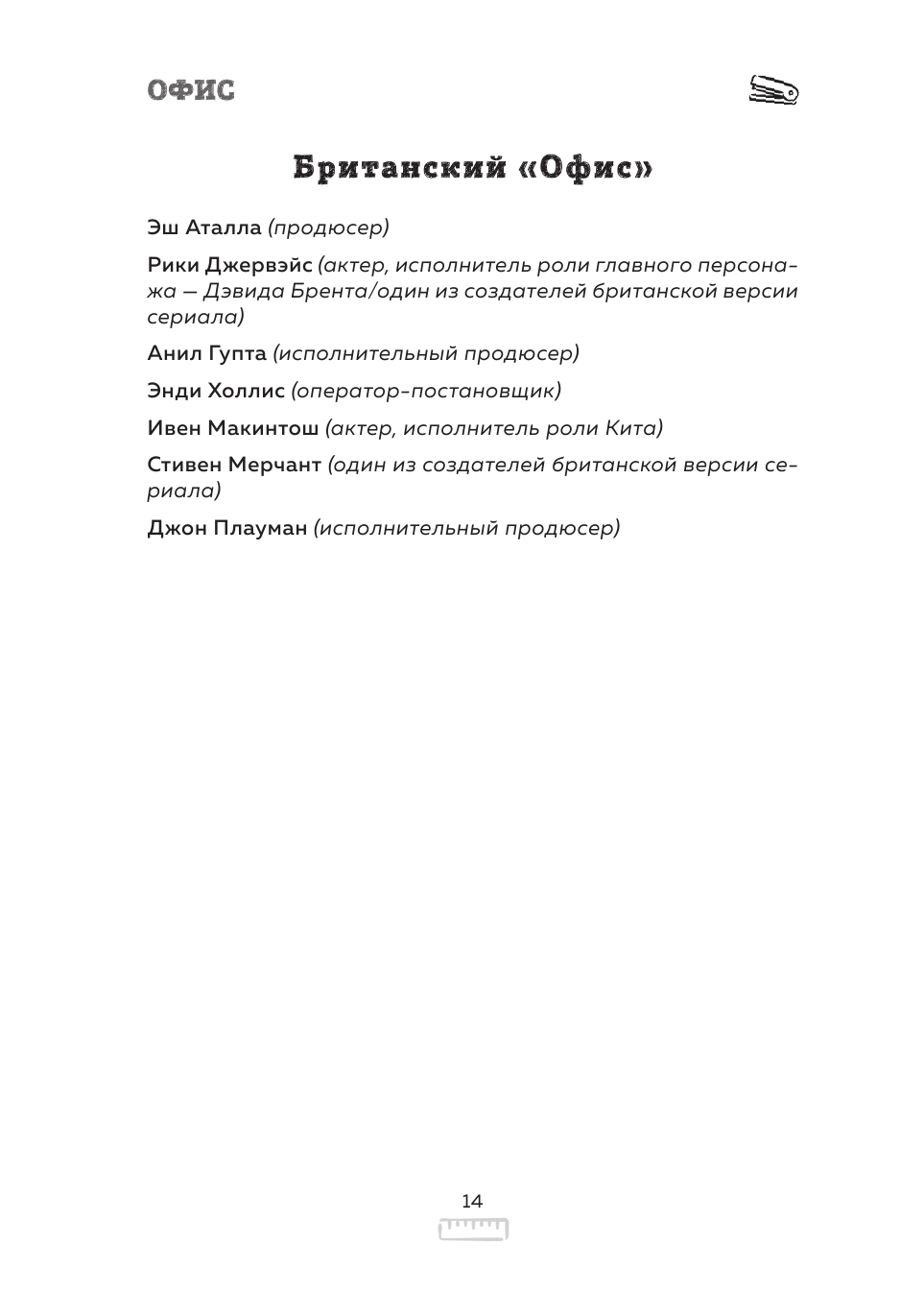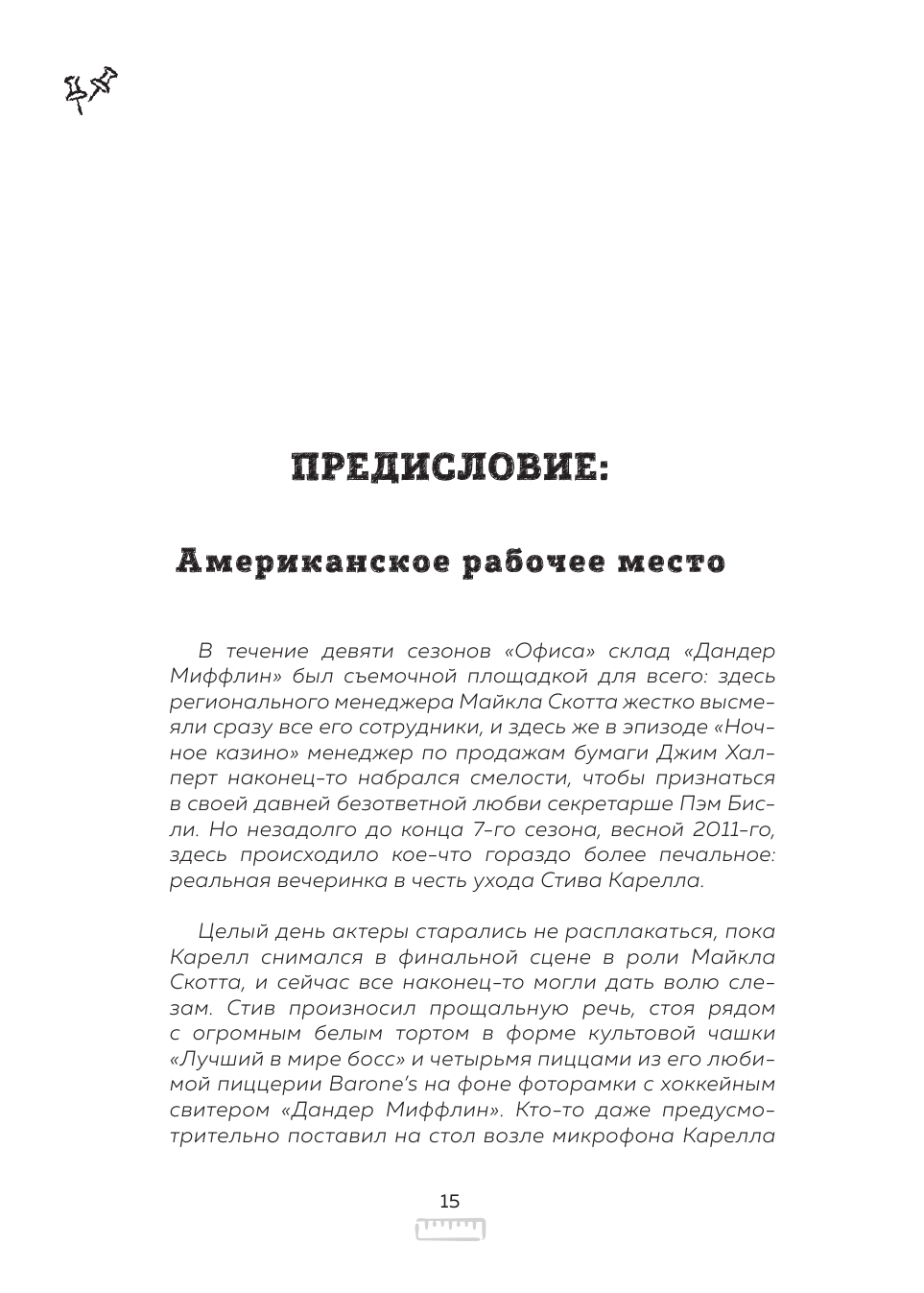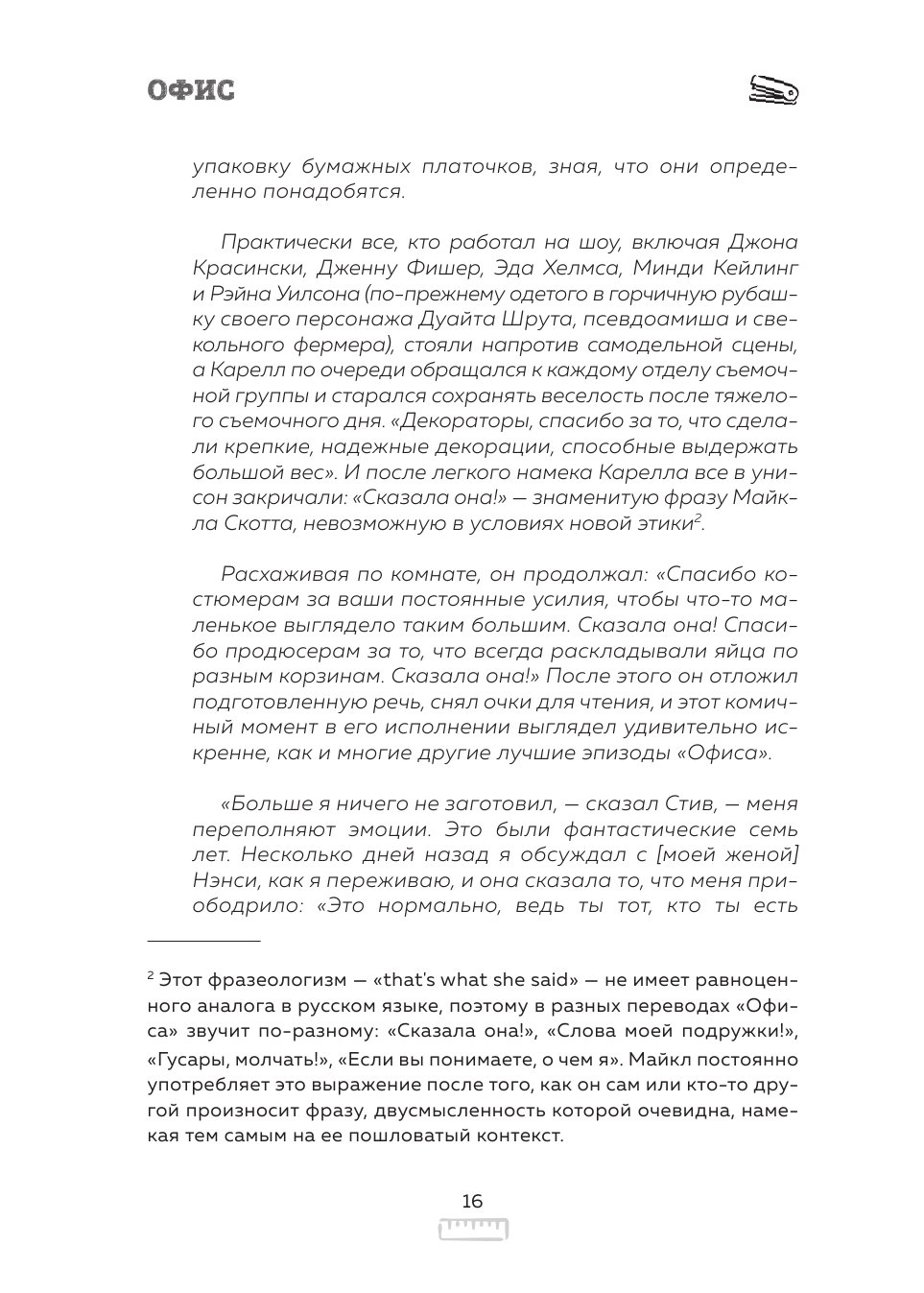 Если вы фанат Офиса, то книга точно для вас. Я пересматривала трижды, и теперь, видимо, после прочтения будет четвёртый раз. Книга написана в формате интервью с различными людьми, от актеров до сценаристов и монтажеров. Такая подача погружает тебя в происходящее, как будто сам оказываешься на съёмочной площадке. История идёт от момента возникновения британской версии, до слез на съемках последней серии американского Офиса. Много классных историй, пасхалок, тёплых слов. Я улыбалась (а иногда громко смеялась или даже пускала слезу) на протяжении всей книги. Однозначно рекомендую.