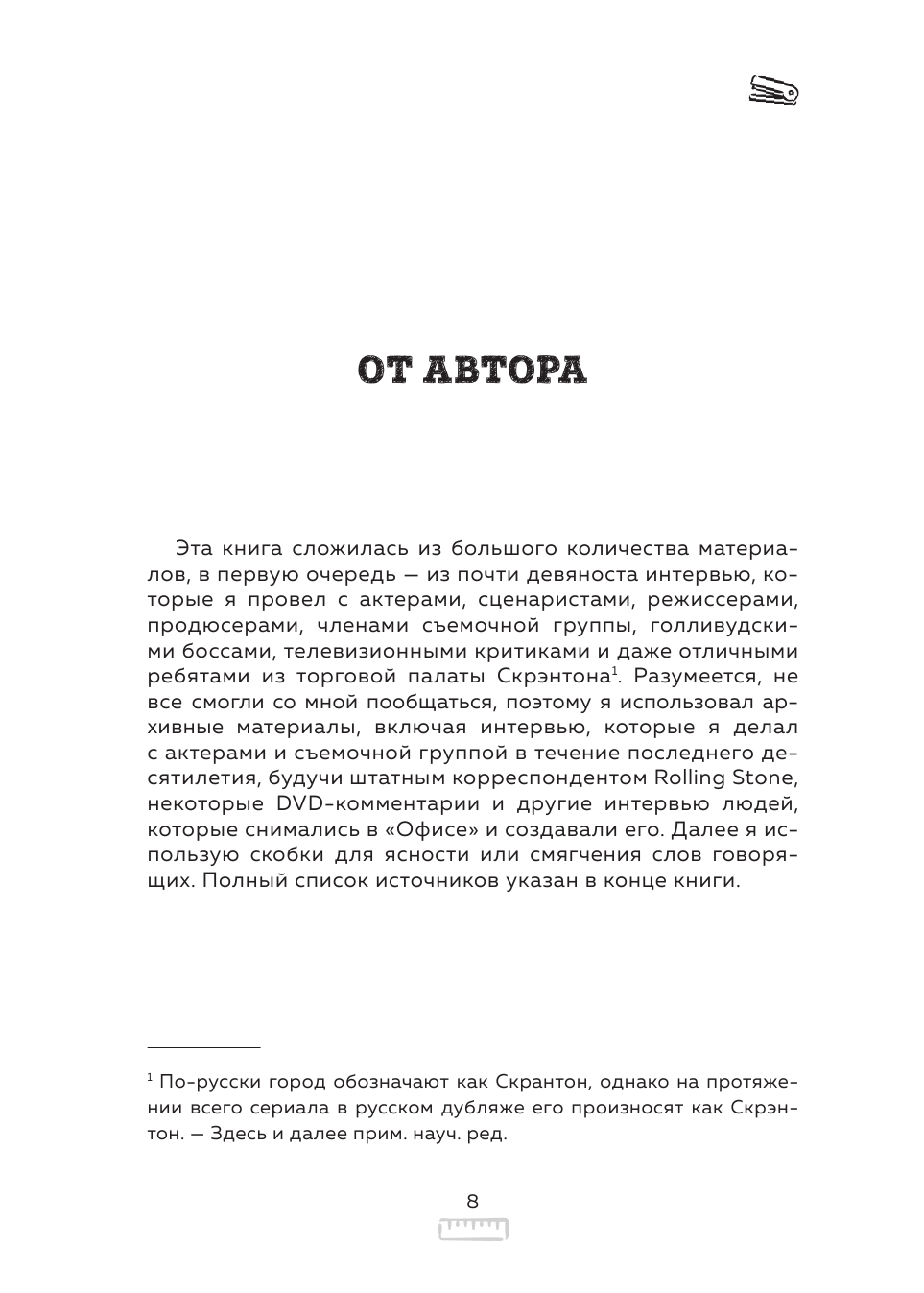 Заказывала в качестве новогоднего подарка для подруги. Очень долго не могла придумать, что же ей подарить, а потом случайно наткнулась здесь на эту книгу и вспомнила, что она огромный фанат сериала Офис. Почитала оглавление и заказала, хотя сама никогда сериал целиком не смотрела. Очень переживала, понравится ли ей, не была до конца уверена, что это правда стоящая книга про сериал и его съемки. Но подруга была в восторге, так что одобрено фанатом!