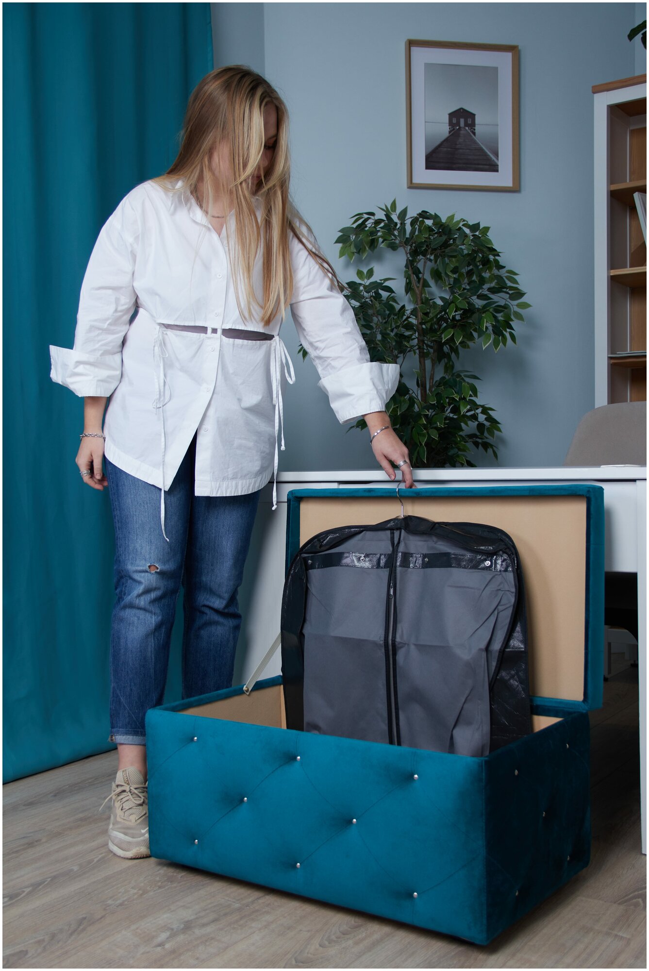 Банкетка сундук с ящиком для хранения в прихожую, в спальню, в гостинную, в детскую, в кухню, в зал прекрасно впишется в любой интерьер дома или дачи. Пуф идеальный подарок мужчине или женщине. Подарок любимой, маме, жене, подруге.Сундук банкетка из бархатистого микровелюра с переливающейся фактурой представлен в нескольких цветах! Декоративные элементы - пуговицы по корпусу и стразы на крышке делают данный сундук центром внимания.Сундук очень удобен в использовании в качестве пуфа или банкетки. Его крышка изготовлена из прочного материала, способного выдерживать большую вертикальную нагрузку до 150 кг. Объемное внутреннее пространство банкетки, отделанное бежевым спанбондом, позволяет хранить различные предметы домашнего обихода и вещи.Сундук подойдет к любому интерьеру дома, дачи,и смотрится дорого и презентабельно. Вес - около 8 кг. Сундук имеет пластиковые ножки. Элегантный пуфик банкетка будет служить местом для сидения и дополнительным местом для хранения.