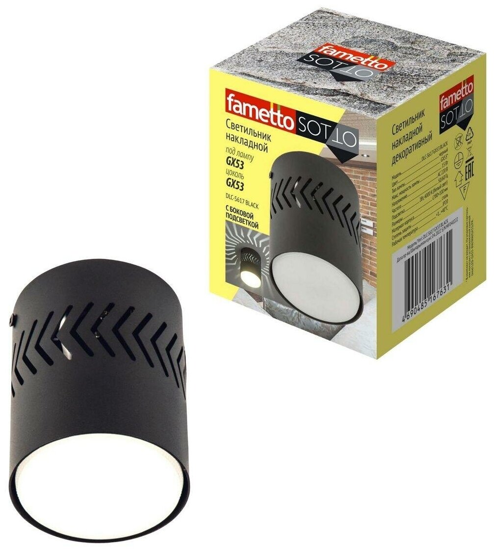 **Светильник точечный накладной Fametto S617** используется в качестве дополнительного источника света в помещениях небольшой площади (до 3 м²), а также для создания визуальных зон. Не предназначен для эксплуатации в условиях повышенной влажности или запыленности (класс IP20).
