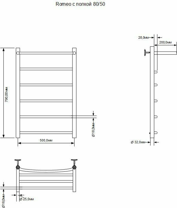 Полотенцесушитель электрический Aquanet Romeo 80х50 Тэн R с полкой 00281991