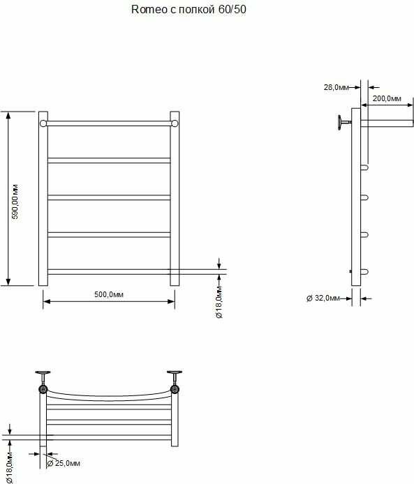 Полотенцесушитель электрический Aquanet Romeo 60х50 Тэн R с полкой 00281990