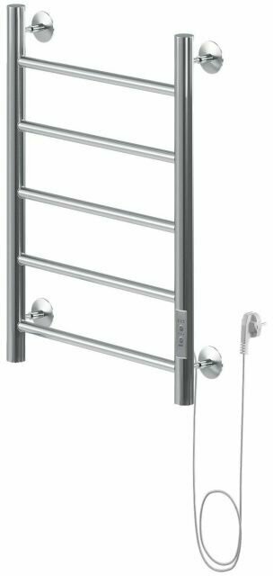 Электрический полотенцесушитель 43.2x59 см Aquanet Mauro - стильное и технологичное решение для сушки вещей и обогрева помещения. Этот электрополотенцесушитель в форме лесенки изготовлен из высококачественной нержавеющей стали и имеет 5 секций для размещения вещей. У него хромированное покрытие, которое впишется в любой интерьер ванной комнаты. Кнопка включения у данной модели отсутствует - просто подключите вилку в розетку и он готов к работе! Электрический нагревательный элемент обеспечивает комфортную температуру в помещение, а мощность 87 Вт гарантирует быстрый нагрев.