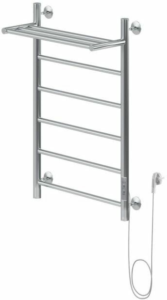 Электрический полотенцесушитель 53.2x79 см Aquanet Mauro - стильное и технологичное решение для сушки вещей и обогрева помещения. Этот электрополотенцесушитель в форме лесенки изготовлен из высококачественной нержавеющей стали и имеет 8 секций для размещения вещей. У него хромированное покрытие, которое впишется в любой интерьер ванной комнаты. Кнопка включения у данной модели отсутствует - просто подключите вилку в розетку и он готов к работе! Электрический нагревательный элемент обеспечивает комфортную температуру в помещение, а мощность 94 Вт гарантирует быстрый нагрев.