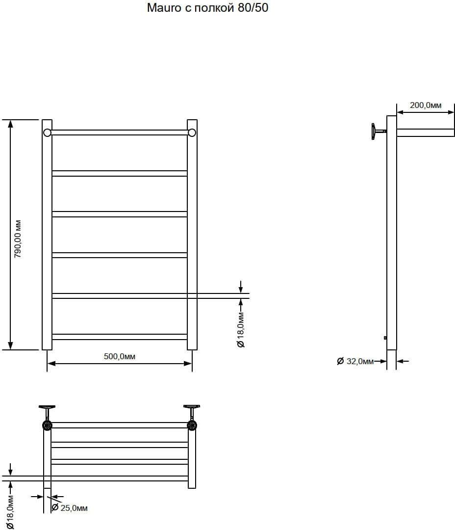Полотенцесушитель электрический Aquanet Mauro 80х50 Тэн R с полкой 00282007